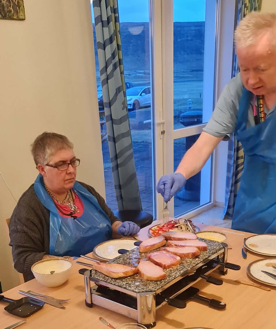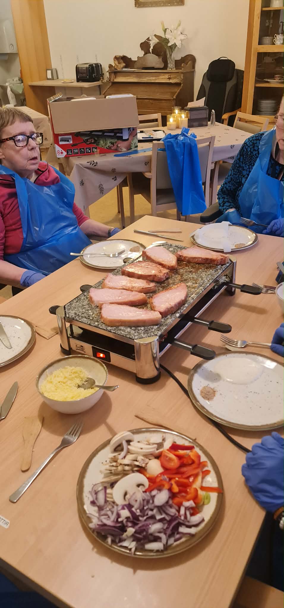 Matreiðslunámskeið Áfram halda matreiðslunámskeiðin hjá okkur undir handleiðslu Ásu Fossdal og í dag voru hunangsgljáðar grísakótilettur eldaðar.