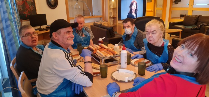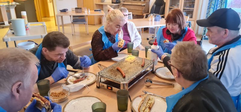 Matreiðslunámskeið Í dag var pylsupartý á matreiðslunámskeiðinu. Þær runnu sko ljúflega niður í mannskapinn og allir sáttir í lok tímans.